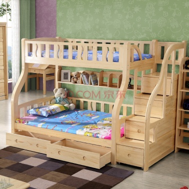 中派 进口芬兰松木家具实木儿童高低床子母床上下铺带梯柜双层床