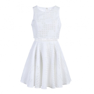 夏装新款修身假两件无袖绣花蕾丝连衣裙