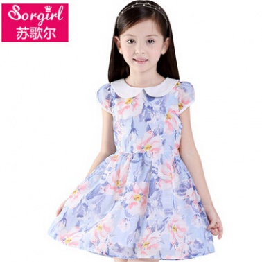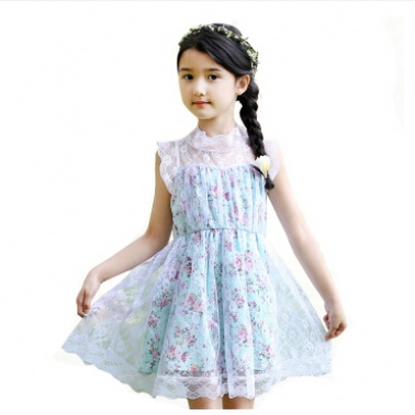 米妮哈鲁童装2015夏装新款女童韩版蕾丝连衣裙碎花公主裙