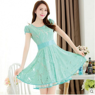 高端2015夏装新款修身淑坊女女装蕾丝短袖复古森女连衣裙装