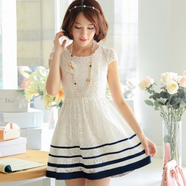 高端2015夏装新款修身淑坊女女装蕾丝短袖复女连衣裙装